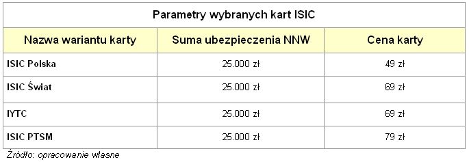 Wykres 3 Parametry wybranych kart ISIC